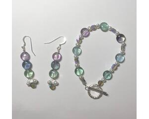 Beautiful Fluorite bracelet and earring set with purple cultu...